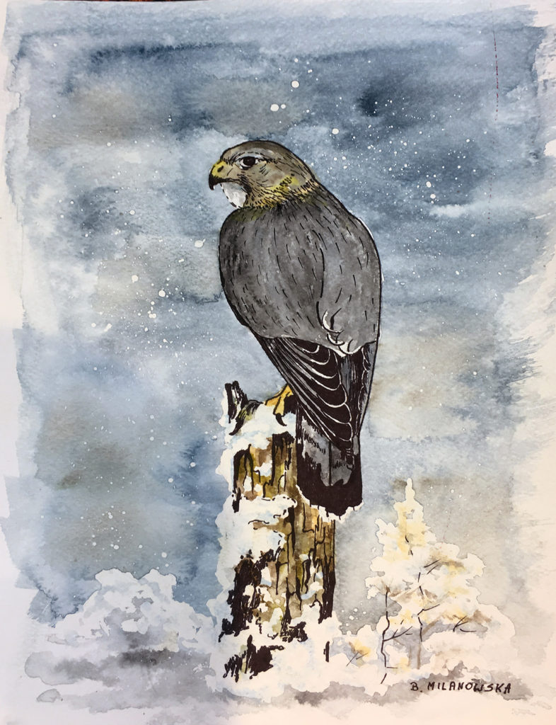 ,,Sokół”, akwarela 30 X 40, 2017r.