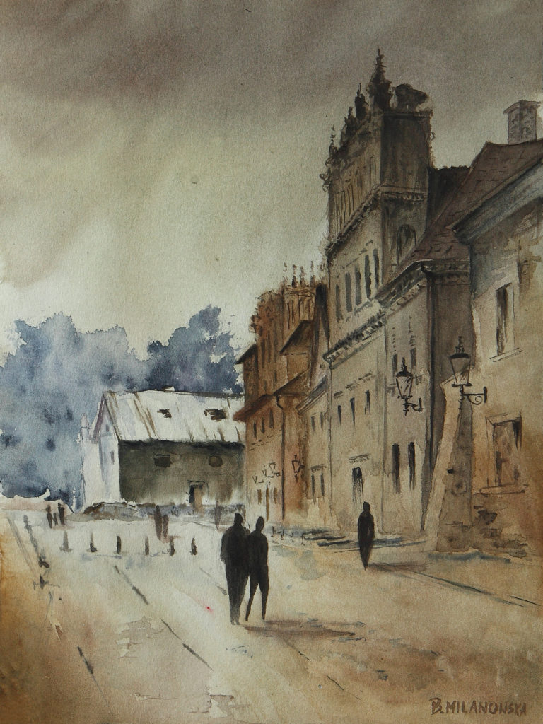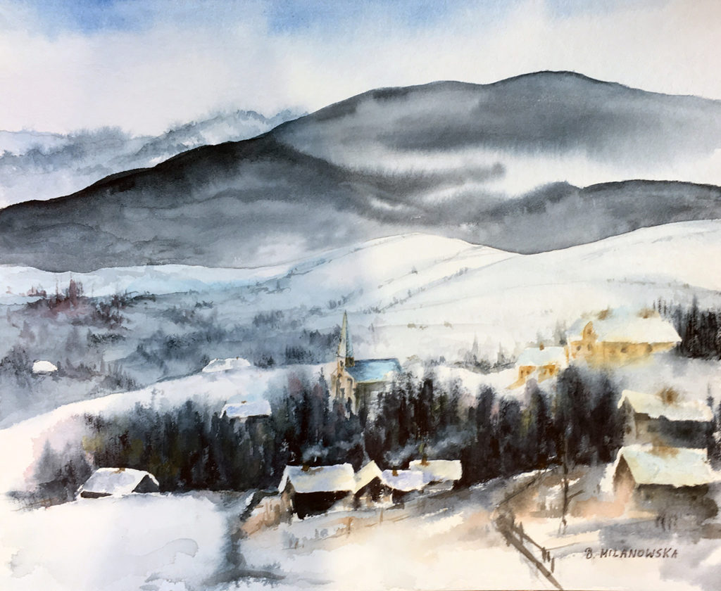 ,,Miasteczko w górach”, akwarela 50 X 40, 2016r.