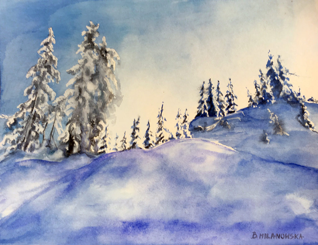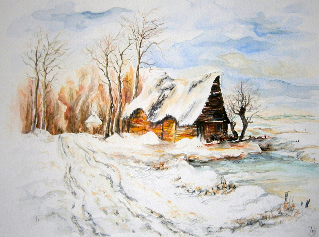 kopia: ,,Zimowy obrazek”. Akwarela 30 X 40, 2006r.