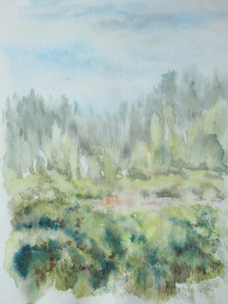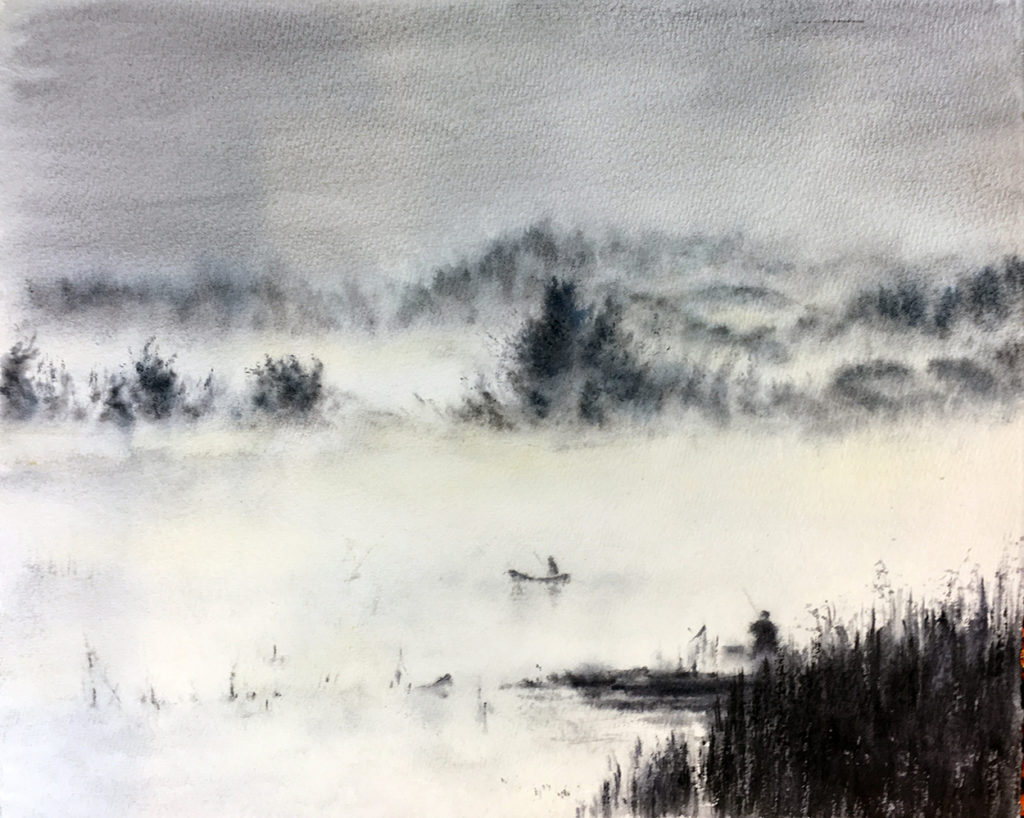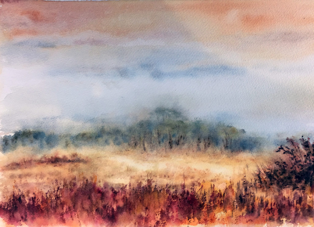 ,,Poranne mgły”, akwarela 30 X 40, 2017r.