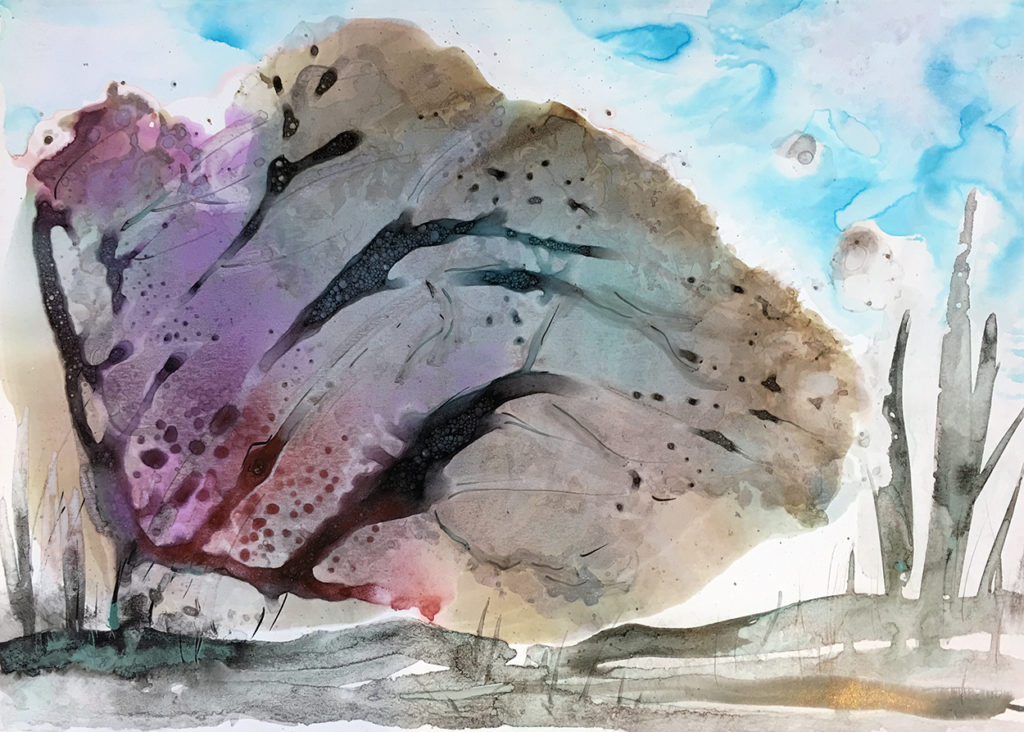 ,,Tajemnicze drzewo”, atrament z tuszem 30 X 25, 2016r.