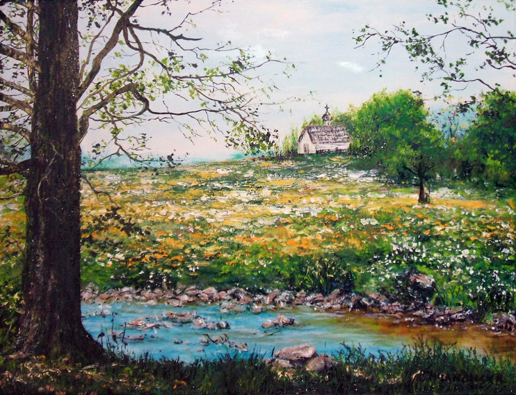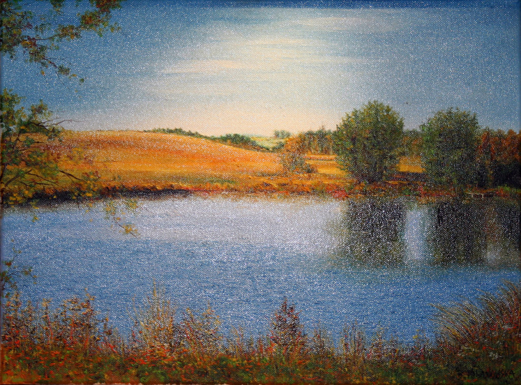 ,,Leśne jeziorko”, olej – szpachla, 70 X 50, 2005r.