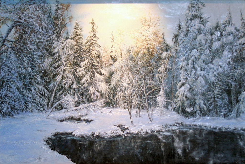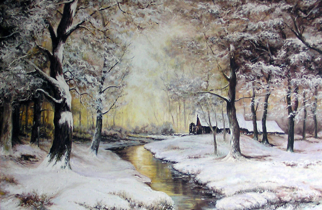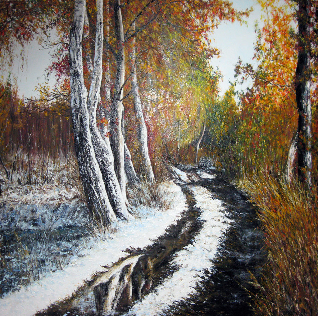,,Pierwszy śnieg”. Olej – szpachla, 90 X 60, 2012r.