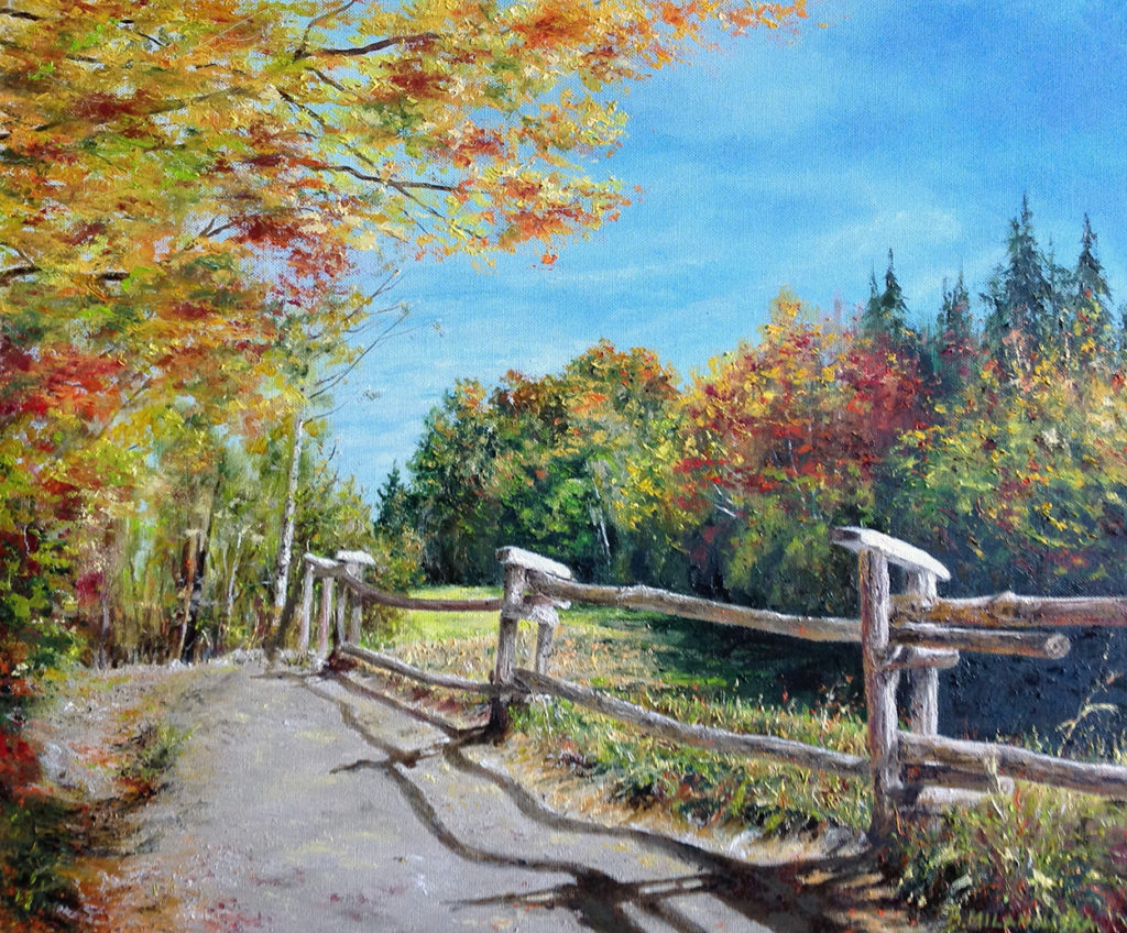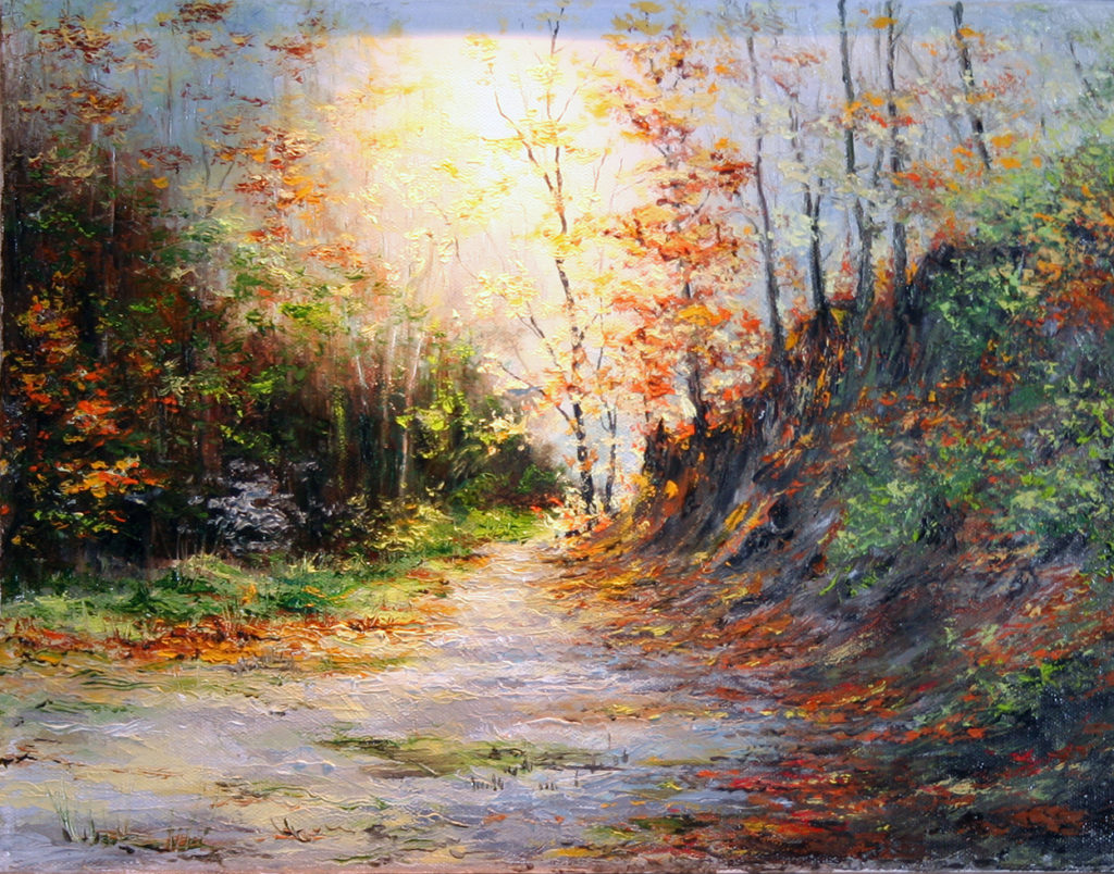 ,,Dębowa aleja”. Olej – szpachla, 65 X 50, 2016r.