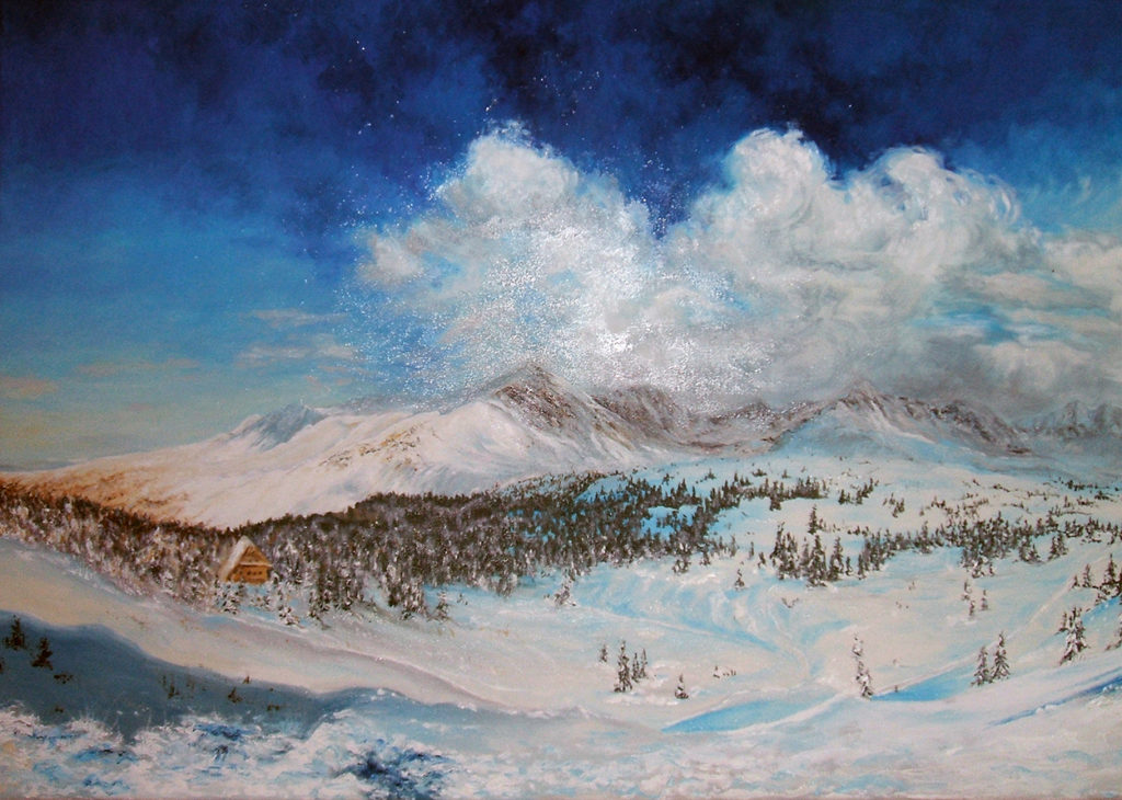 ,,Tatry zimą”. Olej – szpachla, 90 X 60, 2008r.