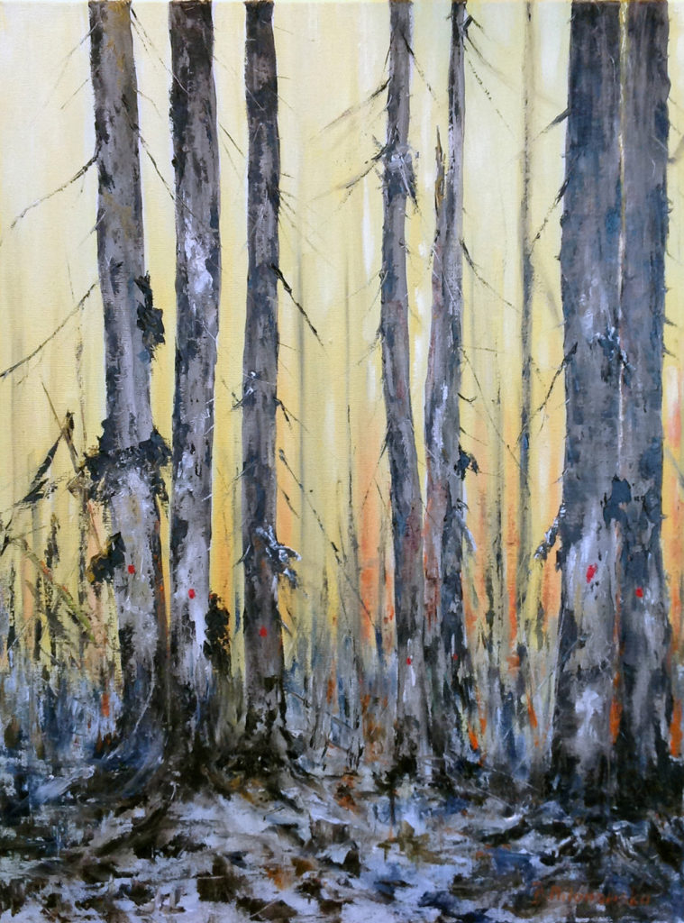 ,,Białowieski cmentarz”. Olej, szpachla 70X50. 2016r.
