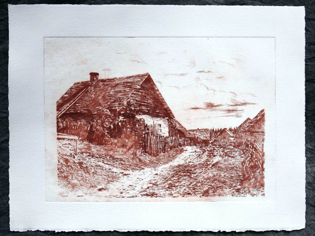Kopia D. Orszulika ,,Chata”. Olej – szpachla, 60 X 40, 2007r.